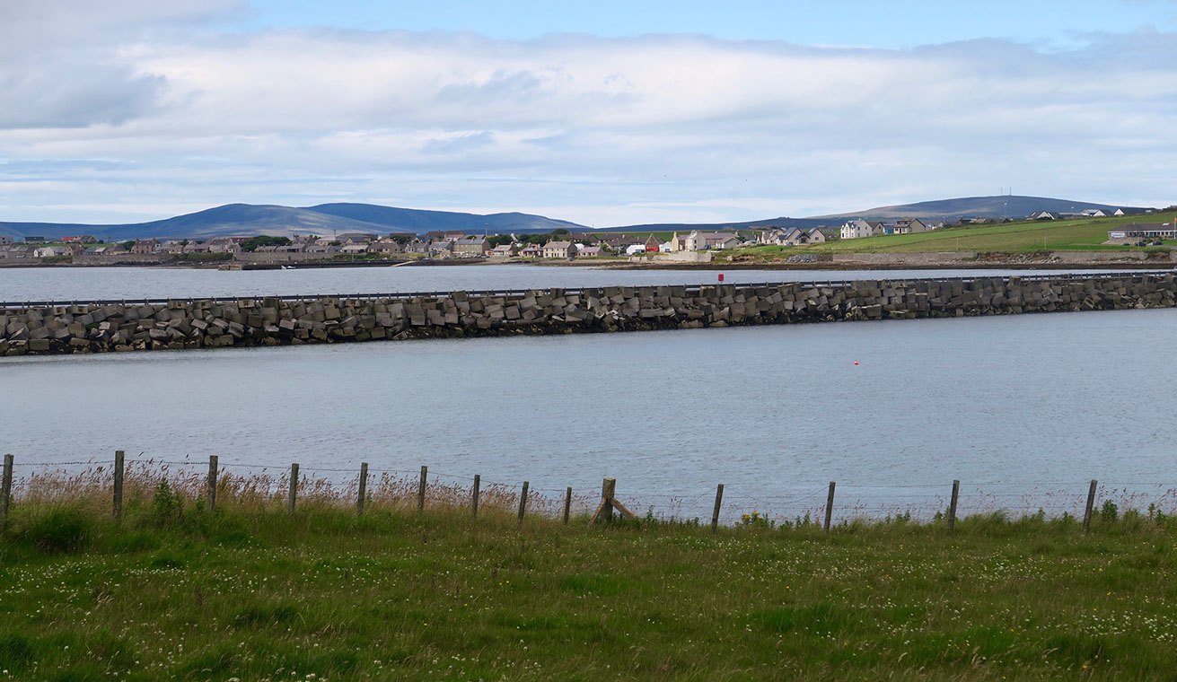 During both world wars, the nearby body of water, Scapa Flow, was the main military naval base for allied forces. This was due to its distance from enemy airfields and provided sheltered anchorage. However on 14th October 1939, the allied battleship HMS Royal Oak was torpedoed by a U boat. There were 1,400 people on board and of these 833 were lost. After more attacks in the area, new defences to Scapa Flow were ordered by Winston Churchill. One such measure was to build a series of four causeways to protect the eastern approach to Scapa Flow. Work began in May 1940 and was completed in September 1945.