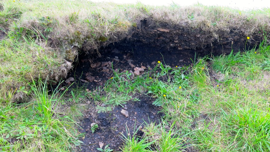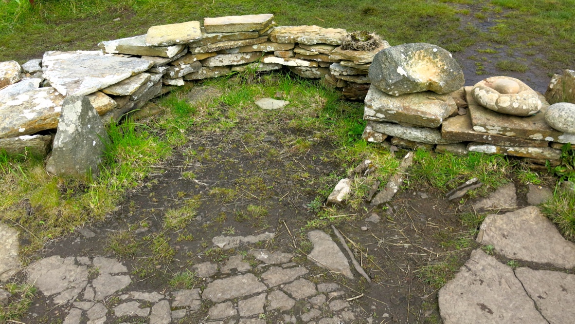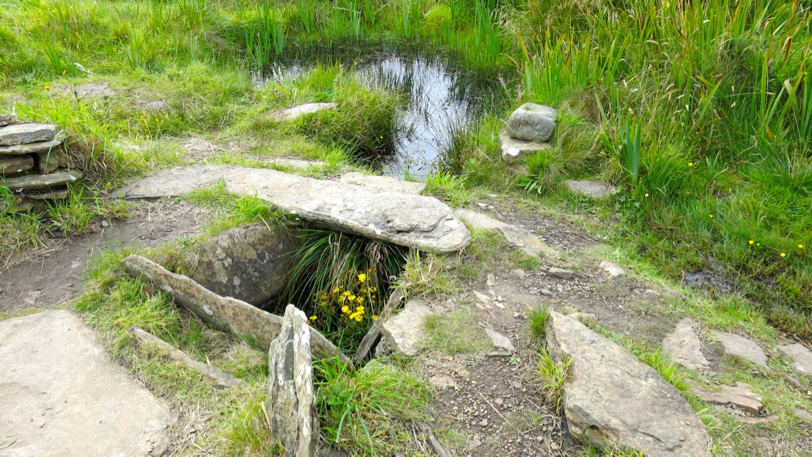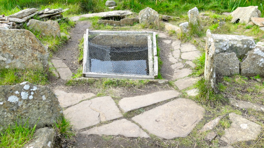 Liddle Burnt Mound and Bronze Age building are situated on the island of South Ronaldsay, Orkney, on Liddle Farm. Thich is also the location of Isbister Chambered Cairn, or ‘Tomb of the Eagles’, as it is known (see here). The site was constucted approximately 3,000 years ago and was in use for around 1,000 years.  The oval, double-walled building contains a large trough, a well and a drainage system to channel away the dirty water. There is also a hearth where is is supposed that stones were heated up then rolled across the floor and dropped into the trough to heat up the water.